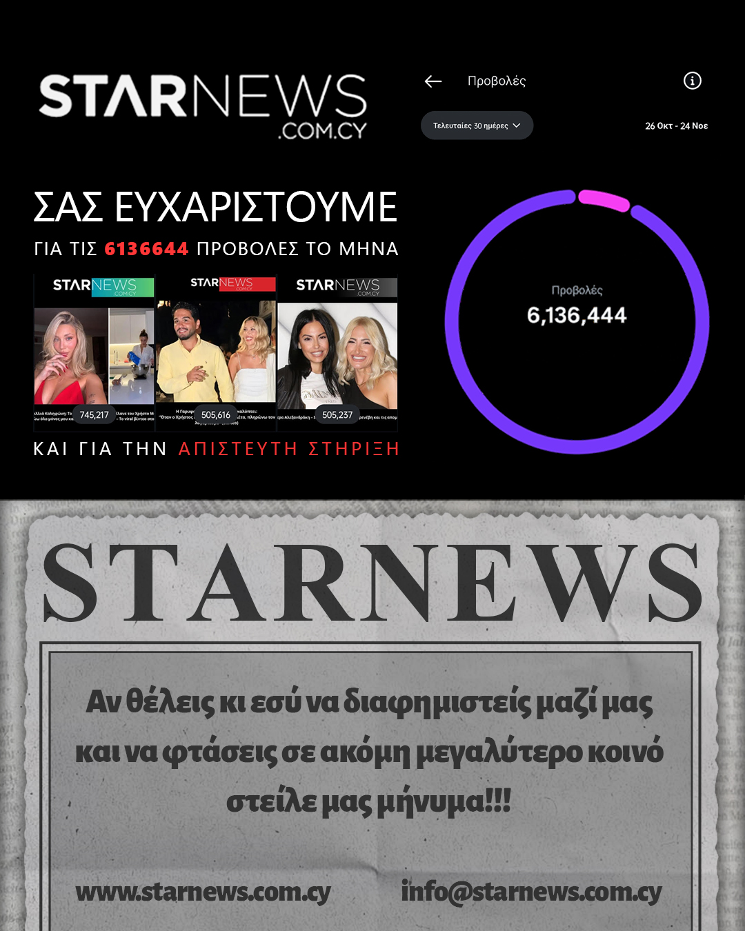 Το STARNEWS.COM.CY Σπάει τα Ρεκόρ! Ευχαριστεί το Κοινό & Καλεί για Διαφήμιση!