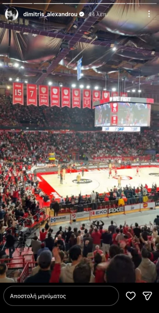 Αν και απέφυγαν τις κοινές πόζες, και οι δύο μοιράστηκαν με τους ακόλουθούς τους στο Instagram στιγμιότυπα από την “καυτή” ατμόσφαιρα του γηπέδου, προδίδοντας έτσι την κοινή τους έξοδο. Δεν είναι μυστικό, άλλωστε, πως ο Δημήτρης Αλεξάνδρου είναι πιστός οπαδός των “ερυθρολεύκων” και δίνει συχνά το “παρών” στις εξέδρες.