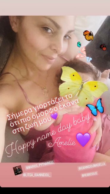 Την ονομαστική της γιορτή είχε χθες, 10 Ιουλίου, η 5 μηνών κόρη της Έλιας Ιωαννίδου, Αμελί.  Η ηθοποιός με αφορμή τη γιορτή του μωρού της, μοιράστηκε στο instagram μία εικόνα αγκαλιά με εκείνην ενώ αναδημοσίευσε και φωτογραφία που την επεσήμαναν με τη μικρή της να πρωταγωνιστεί σε αυτήν.