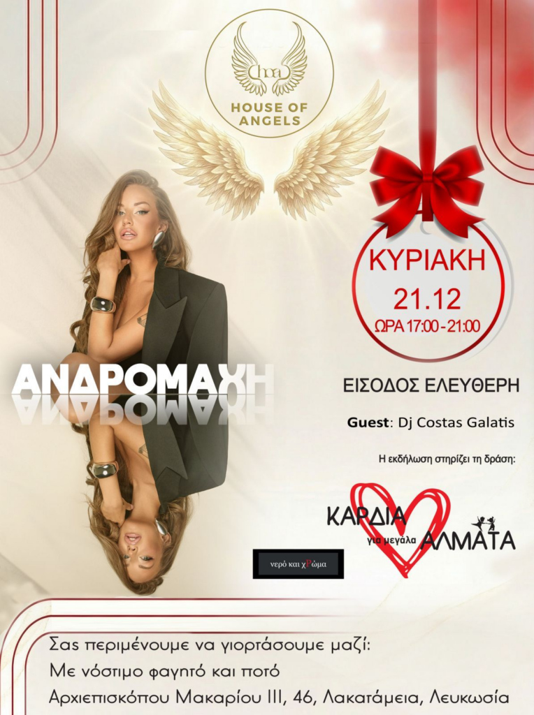 Βάζουμε τα γιορτινά μας και με μεγάλη χαρά σας προσκαλούμε στο Χριστουγεννιάτικο Φιλανθρωπικό Πάρτυ που οργανώνει το House of Angels by Maria Gonata, την Κυριακή 21 Δεκεμβρίου 2025, 5:00μ.μ.-9:00μ.μ.