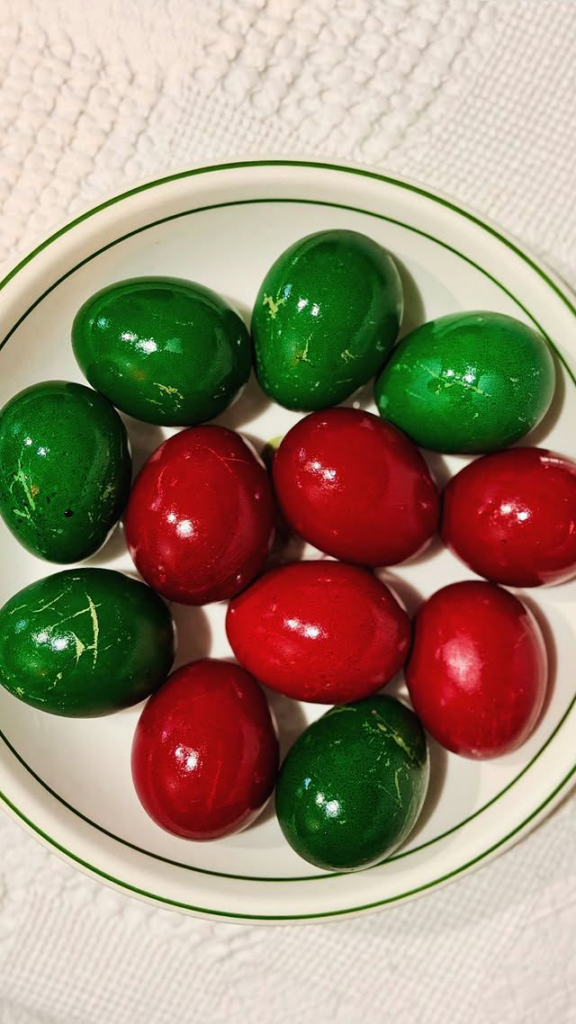 Η παρουσιάστρια μας έδειξε τα πασχαλινά τους αυγά σε κλασικό κόκκινο αλλά και πράσινο χρώμα, κλέβοντας τις εντυπώσεις των διαδικτυακών της φίλων.