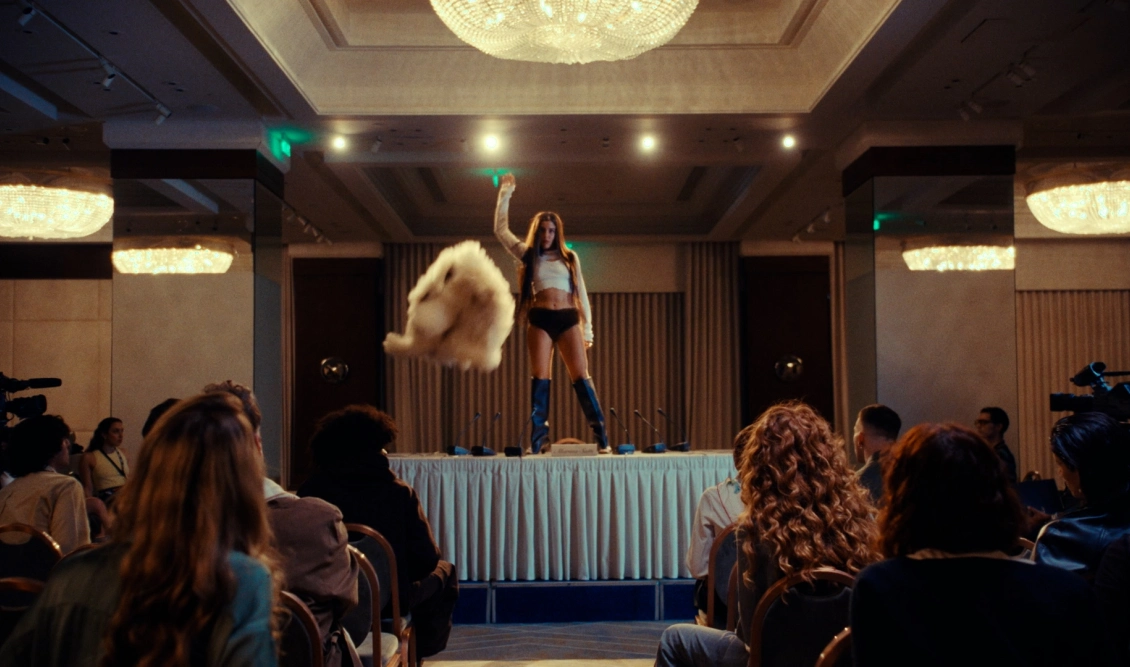 Αντιστρέφοντας τους ρόλους, η Μαρίνα Σάττι απομακρύνει την κάμερα από πάνω της και δίνει πρωταγωνιστικό ρόλο σε ένα ακροατήριο που σταδιακά γίνεται όχλος, ένα κοπάδι λύκων που κινητοποιούνται από τη μυρωδιά του αίματος.