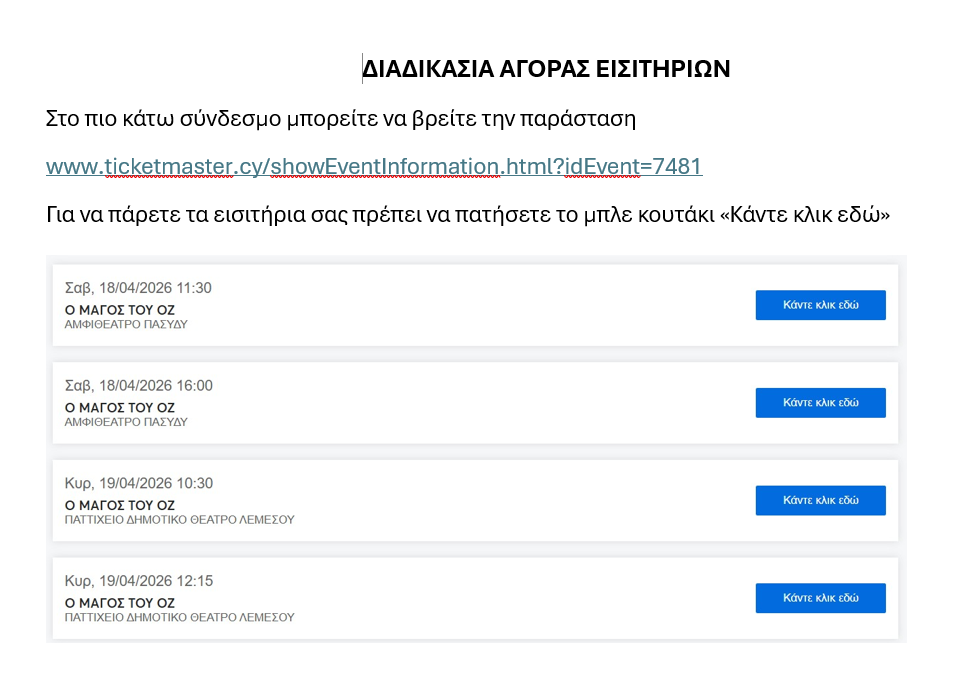 🎟️ Εισιτήρια: Online στο ticketmaster.cy & σε όλα τα καταστήματα ACS Courier.