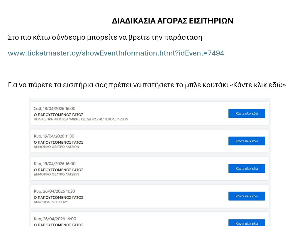 Λευκωσία – ΑΜΦΙΘΕΑΤΡΟ ΠΑΣΥΔΥ την Κυριακή 26 Απριλίου Ώρες 11:30 π.μ. & 4:00 μ.μ.