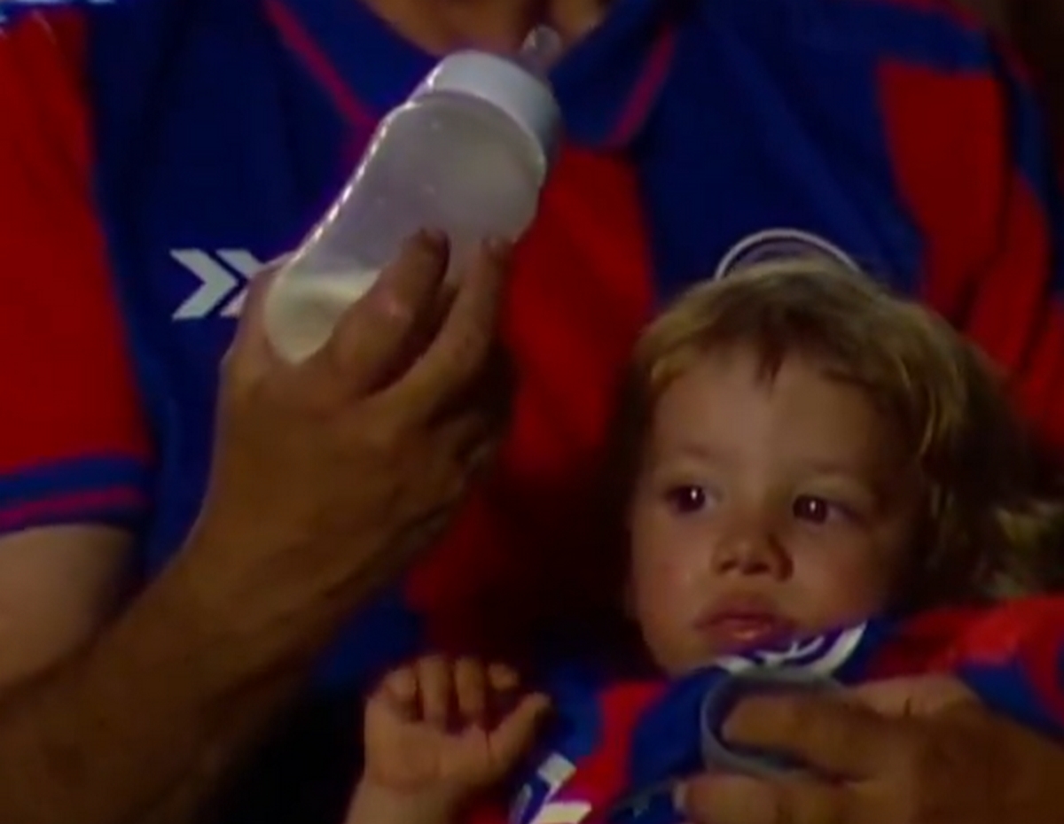 Απίστευτη εικόνα από γήπεδο της Αργεντινής, με έναν οπαδό της Σάν Λορέντζο να έχει εμφανιστεί με ένα μικρό παιδί στην κερκίδα, αλλά να μην καταφέρνει να το ταΐσει, παρακολουθώντας το ματς.
