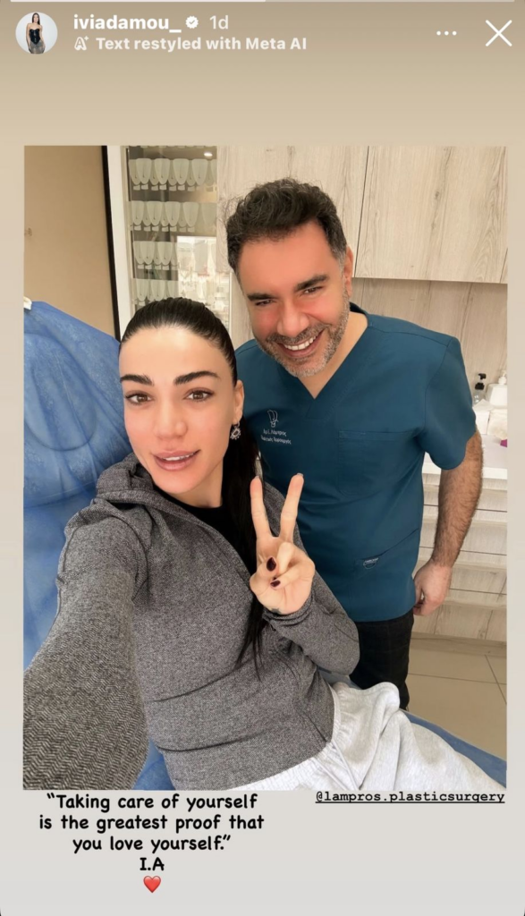 Η αγαπημένη τραγουδίστρια Ήβη Αδάμου μοιράστηκε πρόσφατα μια φωτογραφία που κέντρισε το ενδιαφέρον, ποζάροντας δίπλα στον πλαστικό της χειρουργό. Παρόλο που η ίδια επέλεξε να μην αποκαλύψει αν έκανε κάποια θεραπεία ή αν πρόκειται απλώς για μια επίσκεψη ρουτίνας, η κίνησή της ήταν αρκετή για να αρχίσουν οι συζητήσεις.